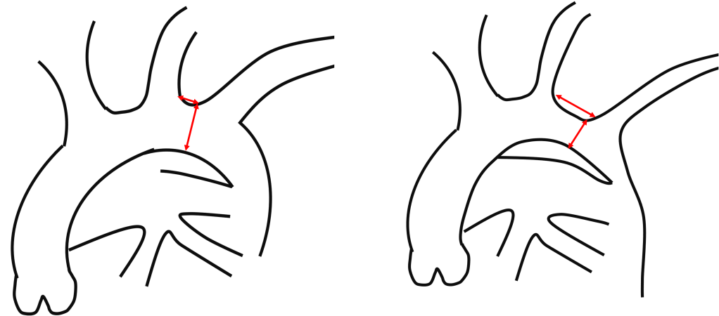 CSAI is defined as, the ratio of the aortic arch diameter at the left subclavian artery(LSA), to the distance between the left carotid artery (LCA) and the left subclavian artery.