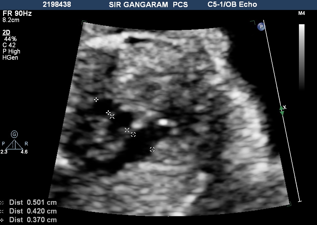- If the ratio is more than 1.2 in the second trimester and more than 1.3 in the third trimester then Ventricle disproportion should be considered significant.