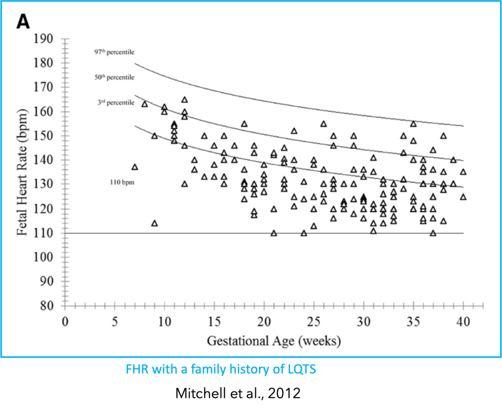- Reliable Indicator: An FHR falling below the 3rd percentile for gestational age serves as a more reliable indicator of LQTS than previously established flat rates, and improves LQTS identification—from 15% to 85%. (Mitchell et al., 2012).