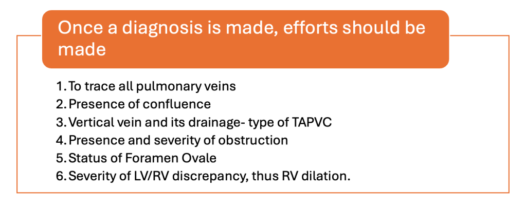 - Confirmatory Imaging: To solidify the diagnosis, track all pulmonary veins, venous confluence, vertical vain, and grade obstruction.