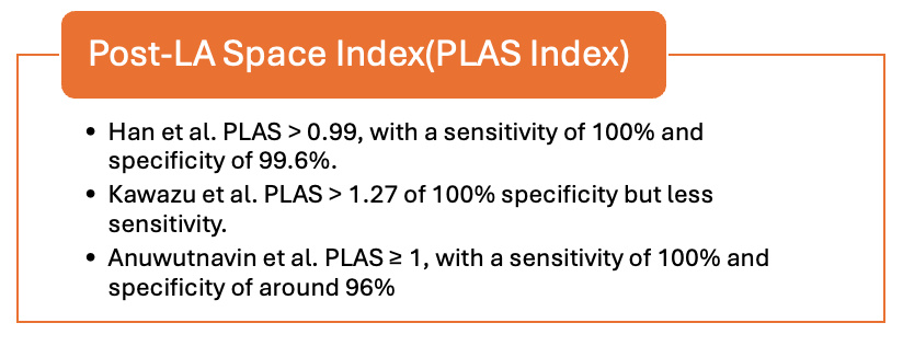 This index measures the distance between the LA and descending aorta, with higher values suggesting TAPVC. Studies show remarkable sensitivity and specificity with this method.