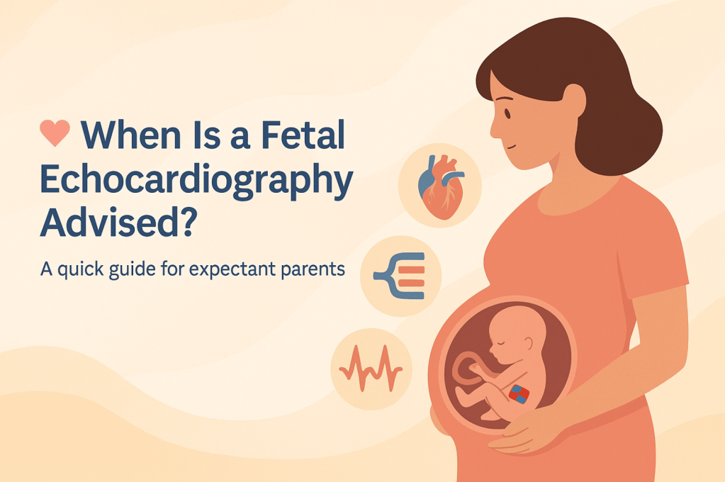 A fetal echocardiography (or fetal echo) is a detailed ultrasound that looks closely at your baby’s heart — its structure, rhythm, and blood flow. It is safe, non-invasive, and done through your tummy, just like a regular pregnancy scan. It helps your doctor ensure that your baby’s heart is developing and functioning normally.